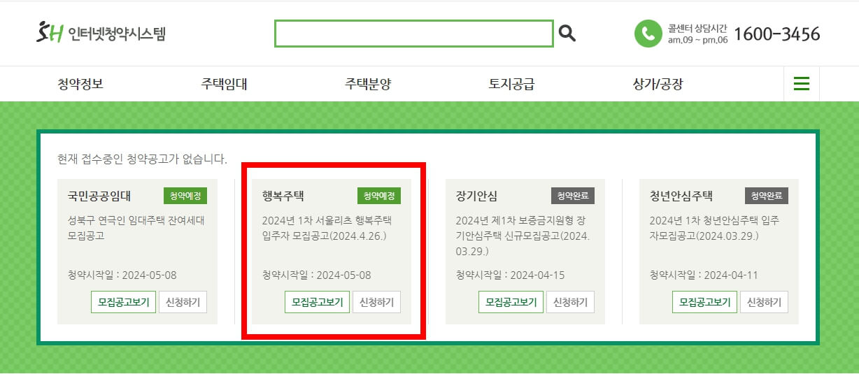 step 2. 행복주택 청약공고 신청하기를 클릭합니다.