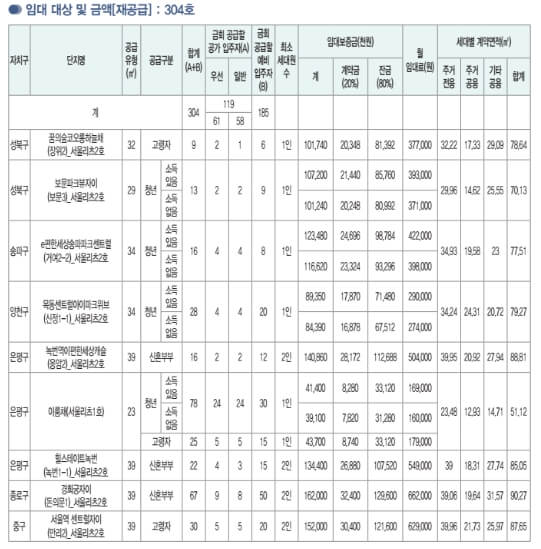 공급세대는 총 304세대로 서울리츠가 소유한 행복주택 119세대 및 예비 입주자 185세대를 대상으로 합니다.